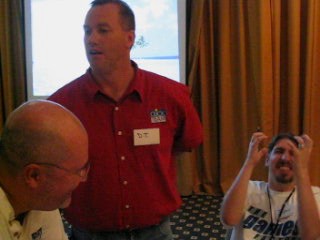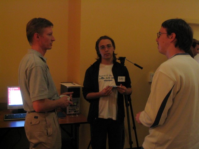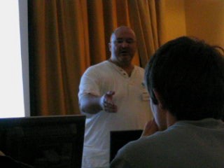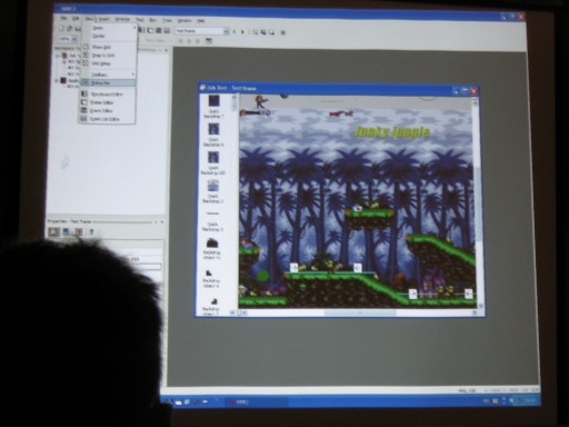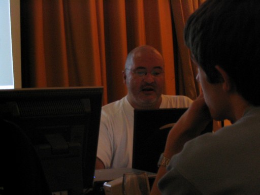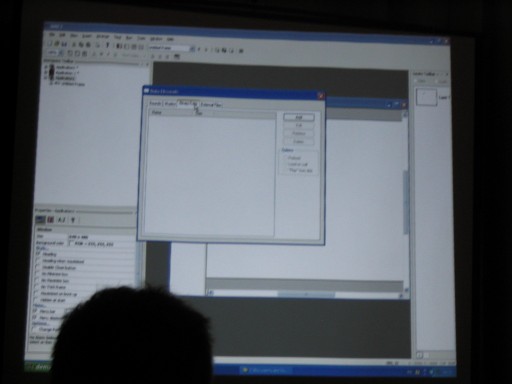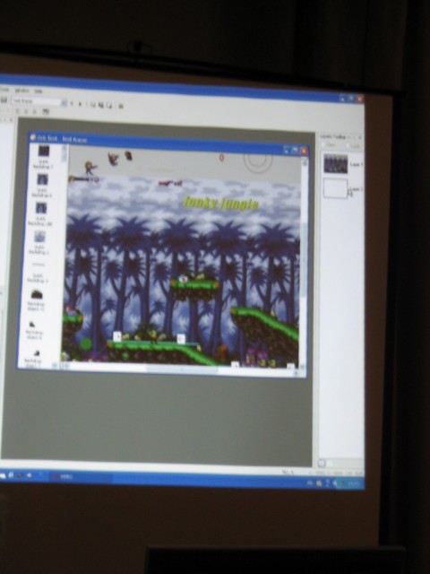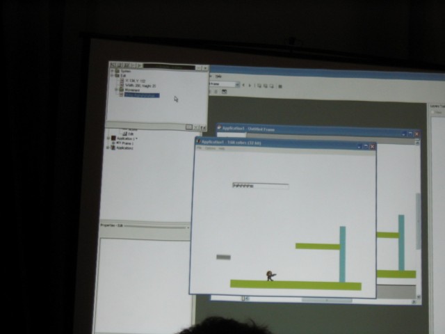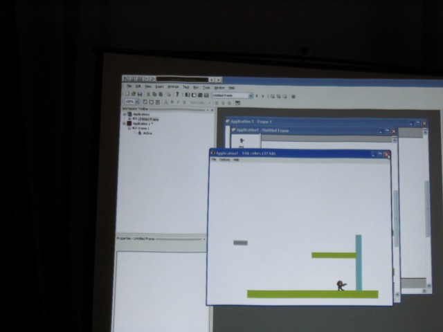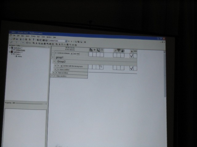 CDG Is Annoying. After some mad traffic, I arrived at Luton and was shipped off to Paris CDG as fast as possible. I was supposed to meet up with some people in CDG but due to the unexpected rushing in the morning, I hadn't any details with me. Still, I thought it shouldn't be too hard. The first thing you will notice is that CDG is in three seperate terminals, and it's not really possible to get information about the other terminals from whereever you are. So I had to use pot luck to guess which terminal to go to to find people. After spending about 2 hours finding terminal 2, I needed to find an internet terminal of any sort to look up details. The internet access is sorely lacking, as is any information on where to find it or anything. After finding their flight details I realised I was about 10 minutes late for meeting them, and then went to where I thought they should be, but it was probably the wrong place still because they didn't show up. Oh well. I found a working internet terminal finally and snapped a picture of the website detailing the hotel where the convention should take place and then got all my money converted to euros and got a taxi there. The taxi driver also got lost but put his meter on quite low after he did so, so I don't think he really ripped me off or anything. In the end I spent about 80 euros trying to get to the hotel. Thanks a lot, CDG! The Convention. The most interesting part, and the part we all want to know about was MMF2. Here's a gui shot. My camera doesn't seem to be ideal for taking shots like this, but I'm sure if I played around with the manual settings mode I could get a lot better quality out of it. Too late for that now. Some Zeb editing in MMF2. Francois talks about MMF2. Really dark so I probably should have used flash. Here's a picture of the layering. At the right hand side there are different layers. The first one has all the Zeb stuff in it and the second one is blank, but you get the idea probably. It's just like photoshop. Layering can be used to make parallax easily. In the top left I noticed a debugger like the Jamagic one. The game was running, by the way, and the little grey platform at the left moved up and down, and the Zeb character could easily jump on it without problems. That's a long waited for improvement. There is a group within a group. Bliss. All the data files (sound, music, etc.) are no longer masked from view. If you want, you can now replace a sound throughout the entire project. You can also do other funky stuff. It's extremely funky! Ah, he came back to the debugger. The first thing I'll say about the debugger is that it is FAST. As Francois made the Zeb guy walk across the screen, the debugger updated with the exact coordinates of the character as soon as the character reached the pixel. Very, very smooth. You can also bring details of any object up to the debugger and also extension developers can add debugging stuff in to their extensions so those should work in the debugger too. This is an extremely powerful little tool that's been added. I can imagine that it'll be really really helpful in the future. After all the information, Francois answered some questions on MMF2. He says everything in English and French because at this convention, everyone spoke around one of those languages. There was a break and people started talking about excellent stuff. Here Yves talks to two french users called Toad and (I think) Batchman. He was just talking to them about their game they made and brought along (Gangs Of Boueville). It's great how the convention offers the chance for you to actually show the Clickteam the games you've made with their products. Francois, DT and JasonDarby discuss how long certain talks should go on for. I hope this gives a good idea of how approachable the Clickteam people are during the convention. You can really just go up and chat with them. Andos and Burfelt goofing around a bit. The 3D glasses are from a presentation that was done by someone whose name escapes me. The presentation was all about using Jamagic to render 3D wireframes which can be seen with glasses. It was pretty cool. This is Neat Kliker. He apparently looks as innocent as a lamb. Jeff made me take this picture. Jet lag? Jeff looks a bit drained. He didn't want his picture taken so I made DT my new subject of photography for the weekend, just as Arwyn had been before. I found out that the hotel had an arcade which had Crazy Taxi! It was 5 euros for three games which is expensive, so I didn't play. Judging by my console CT skill, I could probably play three games for around 2 hours and 15 minutes. Unfortunately there's no way I could pull that off in the arcade, so three games would probably last about 10 minutes. Not worth it. The Hotel resteraunt served me a 'country burger' which sounded vaguely harmless. It was totally red in the middle, which the picture doesn't really show well. I was freaked out by this a bit but then decided I might as well just eat it. It didn't kill me as perhaps a Quick Burger or a Pizza Burger may have. I get the feeling DT noticed I was photographing him again. That was it for the convention day. I didn't take pictures of a lot of things because it slipped my mind, but there were plenty of amazing demonstrations. Probably it will be even better next year. |